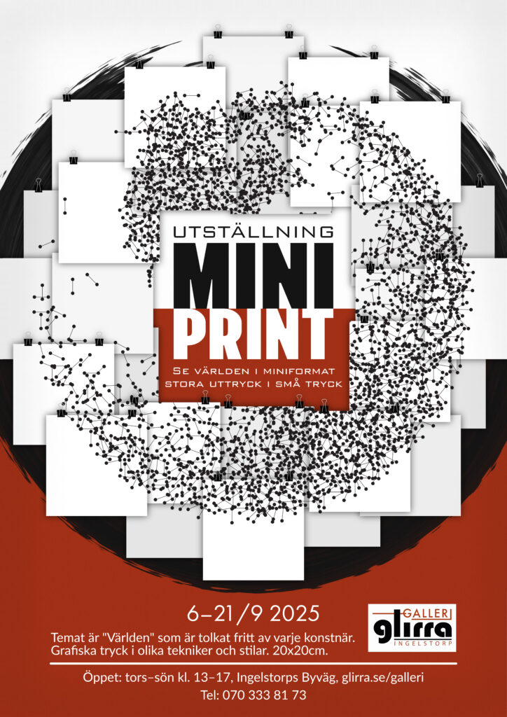 I denna utställning visades 87 verk av 27 konstnärer från Koskullskulle till Berlin med flera olika tekniker som går in under Mini Print.
